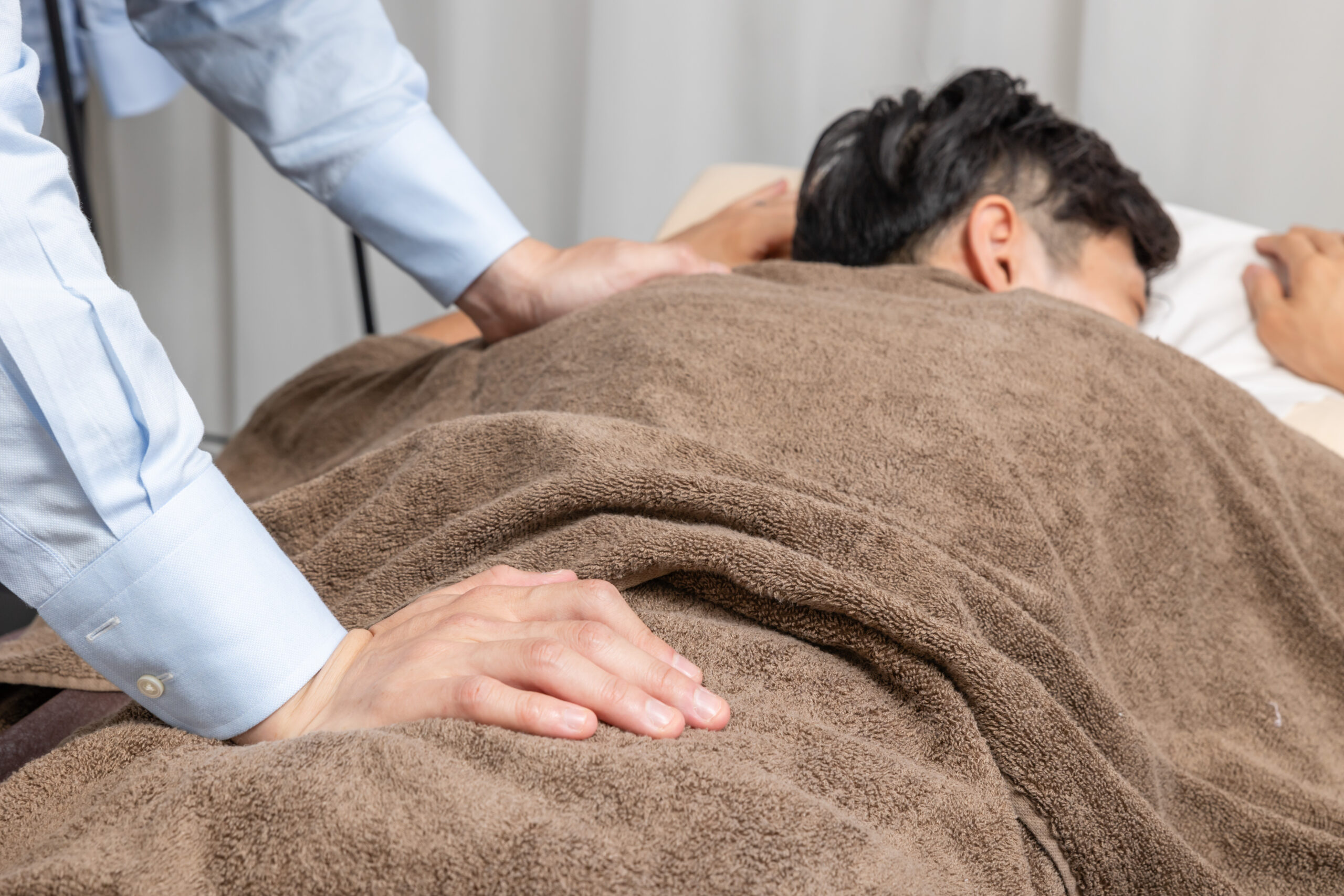 RE-SO-LV鍼灸院では、gentleismの施術で背中の張りをやわらげ、